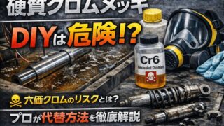 表面処理 硬質クロムメッキは自作できる?DIYの危険性と現実的な代替方法 硬質クロムメッキはDIYで自作できるのか?仕組みや工程、六価クロムの危険性を解説しながら、メッキ風スプレー・簡易電解メッキ・専門業者依頼など現実的な代替方法も詳しく紹介します。 2026.03.06 表面処理